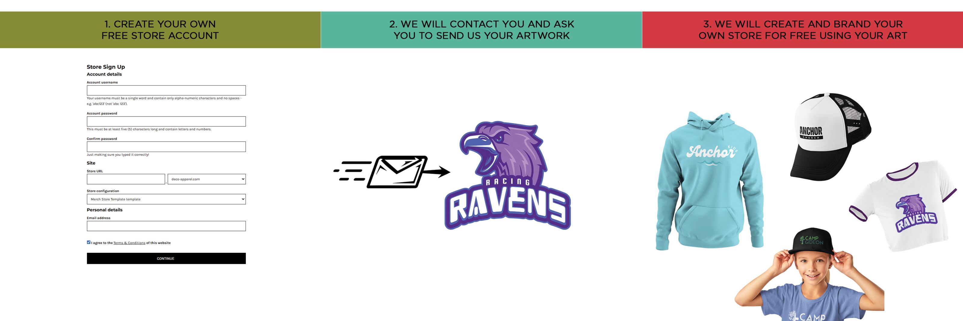 Once you sign up and send your art we will reach out and find out all you want on your store. Our team then will create your store and get you a draft to approve. You will also be able to log in with the credentials you put in below so you can have full access to the site as well!